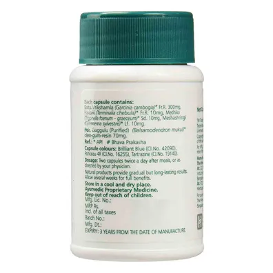 Chebulic Myrobalan, Garcinia, Gymnema, Indian Bdellium, Fenugreek Seeds.Description