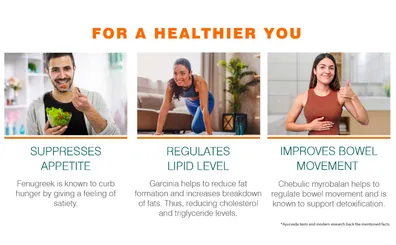 - Appetite regulation: Garcinia in the Himalaya AyurSlim capsule plays a crucial role in suppressing your appetite. This can help prevent overeating and aid in healthier weight management.