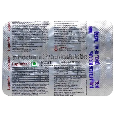 Lupinfer tablet is a dietary supplement used to prevent and treat nutritional deficiencies in pregnant women. Also, it is used to treat low levels of iron in the body.